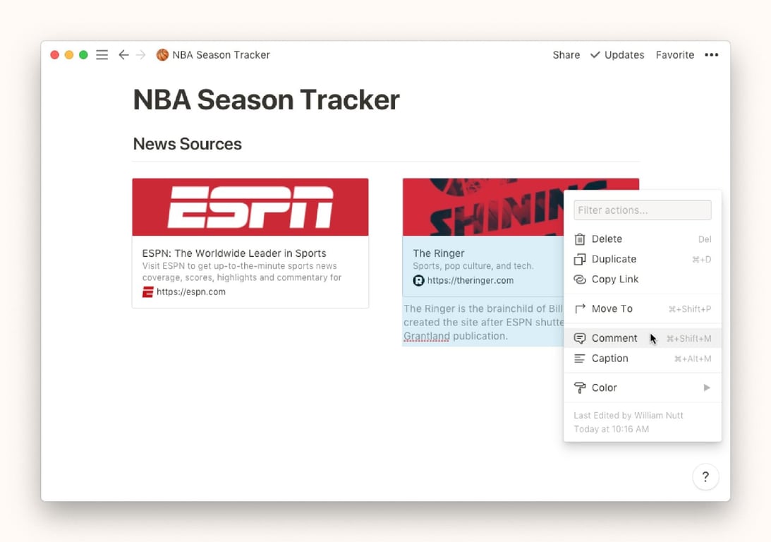 你可以在书签上留下评论,就像任何其他类型的内容块一样。