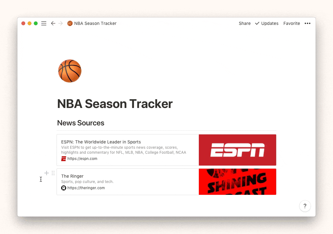 书签对于显示和预览外部链接非常有用。对于你想分享的任何URL,你可以生成一个带有图像和网站内容简短描述的卡片--很像你在Facebook 或 Twitter 上分享链接时一样。